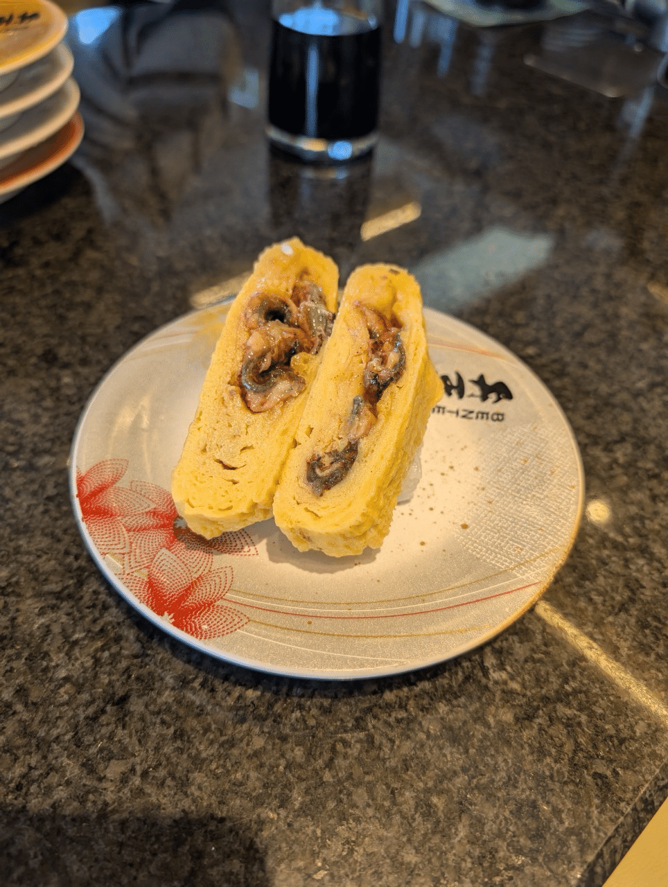 ここで注文したのは、岡山名物の「ままかり寿司」や、新鮮な瀬戸内海の魚を使った握り寿司。特に印象的だったのは、ふっくらした穴子と、ぷりぷりの牡蠣の軍艦巻き。これだけのクオリティの寿司をリーズナブルに楽しめるのは、岡山ならではの魅力です。