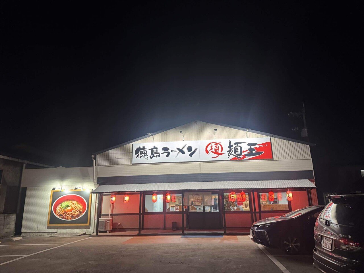 最後の締めくくりは、徳島ラーメンの名店「麺王」。濃厚な豚骨醤油スープに、生卵を落とした独特のスタイルが特徴です。甘辛く味付けされた豚バラ肉と濃いスープが絡み合い、ご飯との相性も抜群。もちろん「替え玉」を頼み、しっかり満腹になりました。